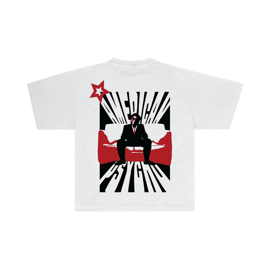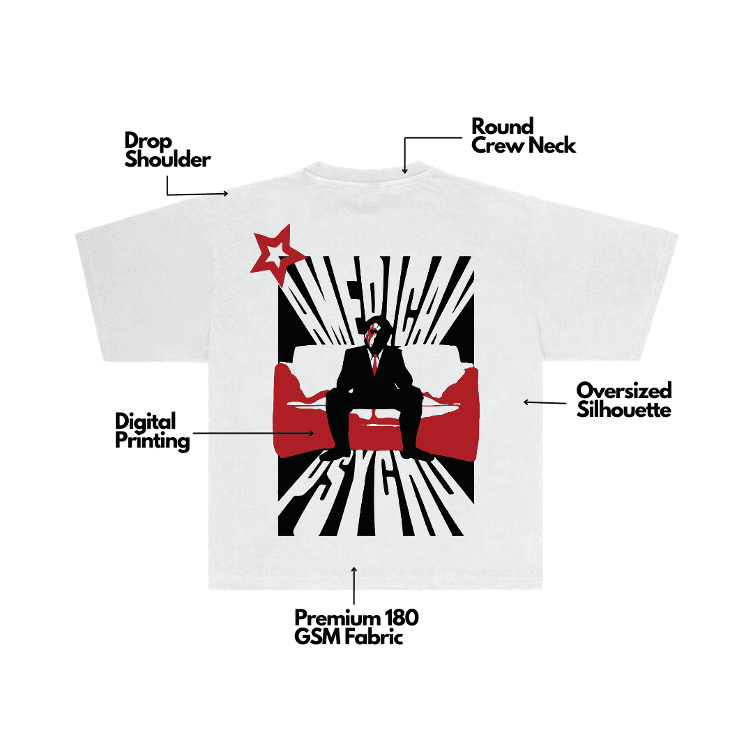 AMERICAN PSYCHO: The Mask of Society Karvaan presents a tee that cuts deeper than designer suits. A well-dressed man, face masked, sits composed—the picture of success hiding a chilling truth. "I SIMPLY AM NOT THERE" whispers from the sleeve, echoing our collective struggle with identity. It's for those who've felt lost behind their own façade, trapped in a world that values appearance over authenticity. This shirt isn't just clothing; it's a mirror to our society. It challenges you to look beyond the surface, to question the roles we play, and to recognize the humanity behind the masks we all wear. Wear this, and carry a powerful reminder: In a world of pretenders, true strength lies in acknowledging our complexities and imperfections.